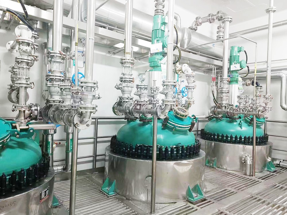 生产车间三层主要为反应投料层,固体物料直接从反应釜投料口投料,液体物料从配夜间管道输送至高位罐或反应釜