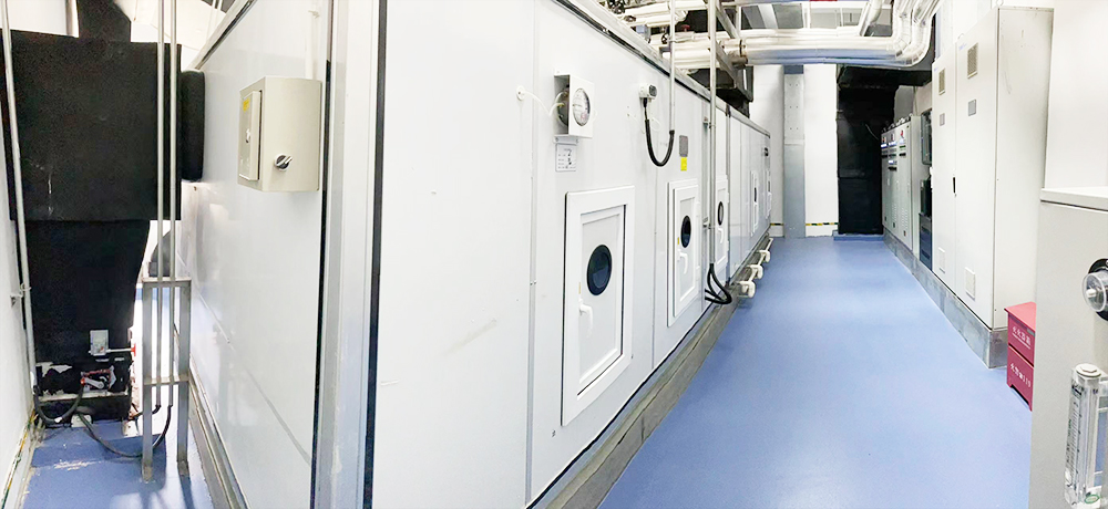 空调净化系统:选用组合式空调机组,配套全自动控制系统以及变频控制技术,可自动调节温湿度与压差,确保生产环境达到GMP标准(C、D级洁净区).初中效过滤器滤袋采用:初效G4+中效F6+中高效F8,净化空调系统风管末端均安装有H14高效过滤器,气流组织为顶送侧回。所有房间的送风经排风口进行全排,排风口装有防止倒灌的止回阀。