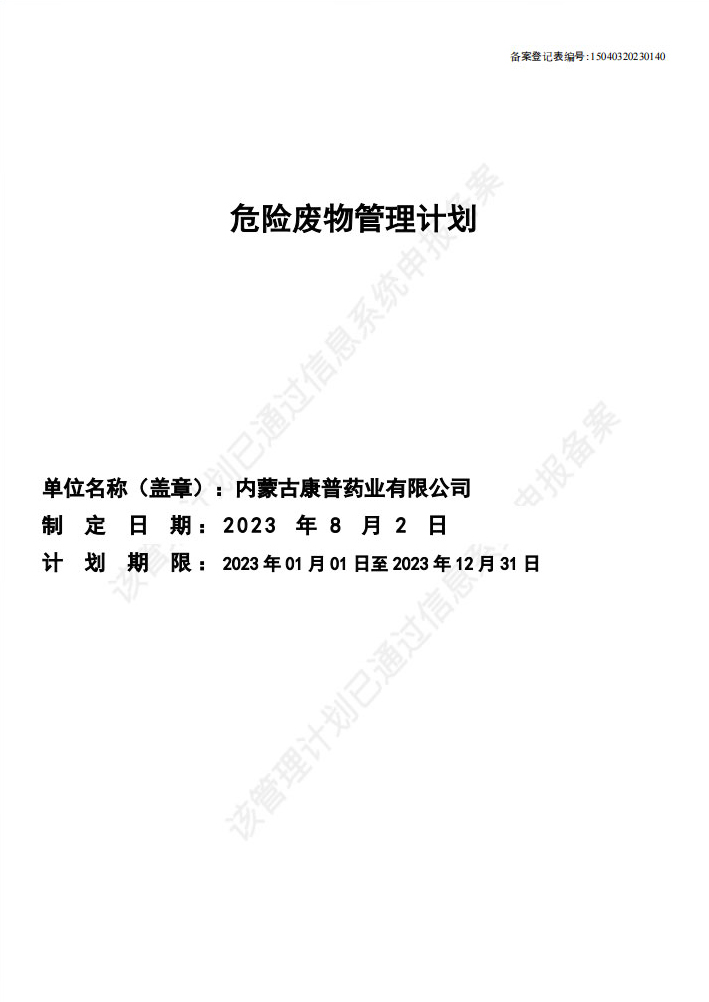 内蒙古康普药业有限公司清洁生产信息公示